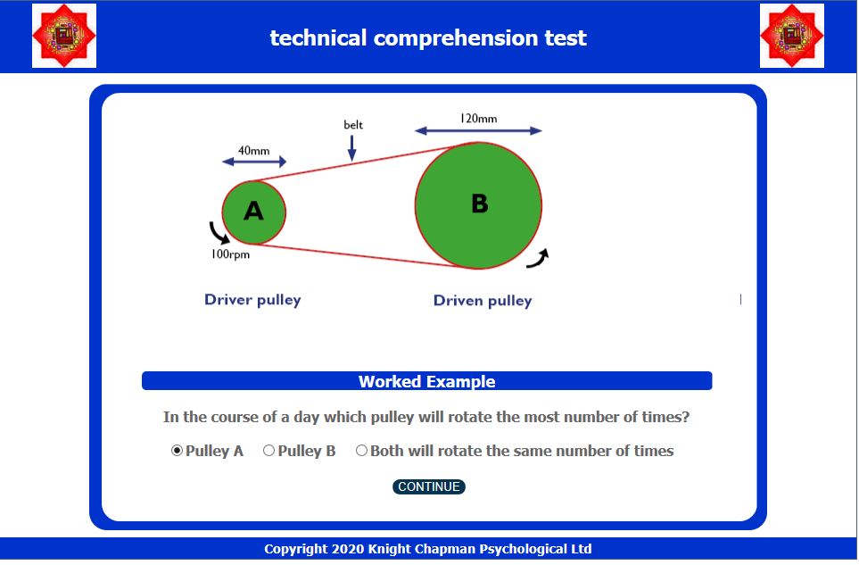 Technical Comprehension Test - measures the ability to work with mechanical, electrical, fault-finding and measurement tasks.