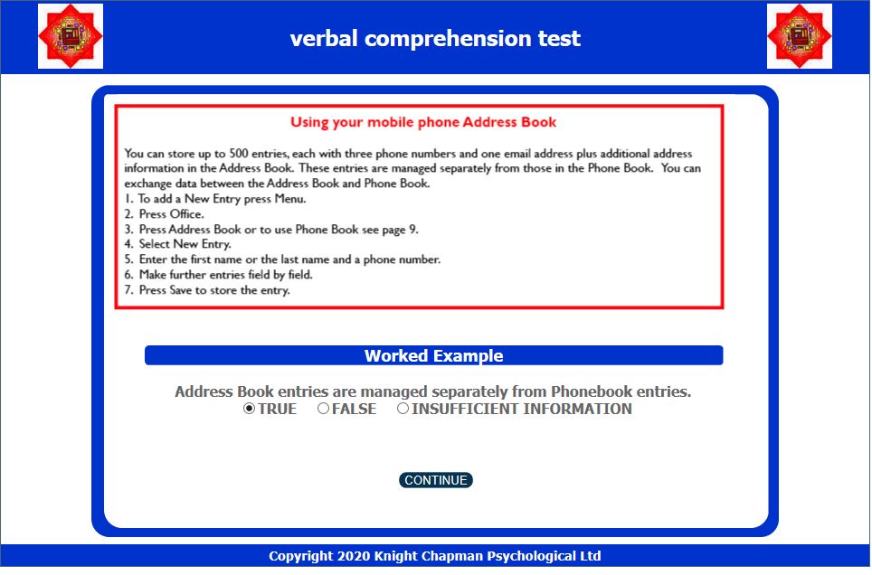 Verbal ComprehensionTest (VCT) - measures the ability to follow and understand work-related verbal data.